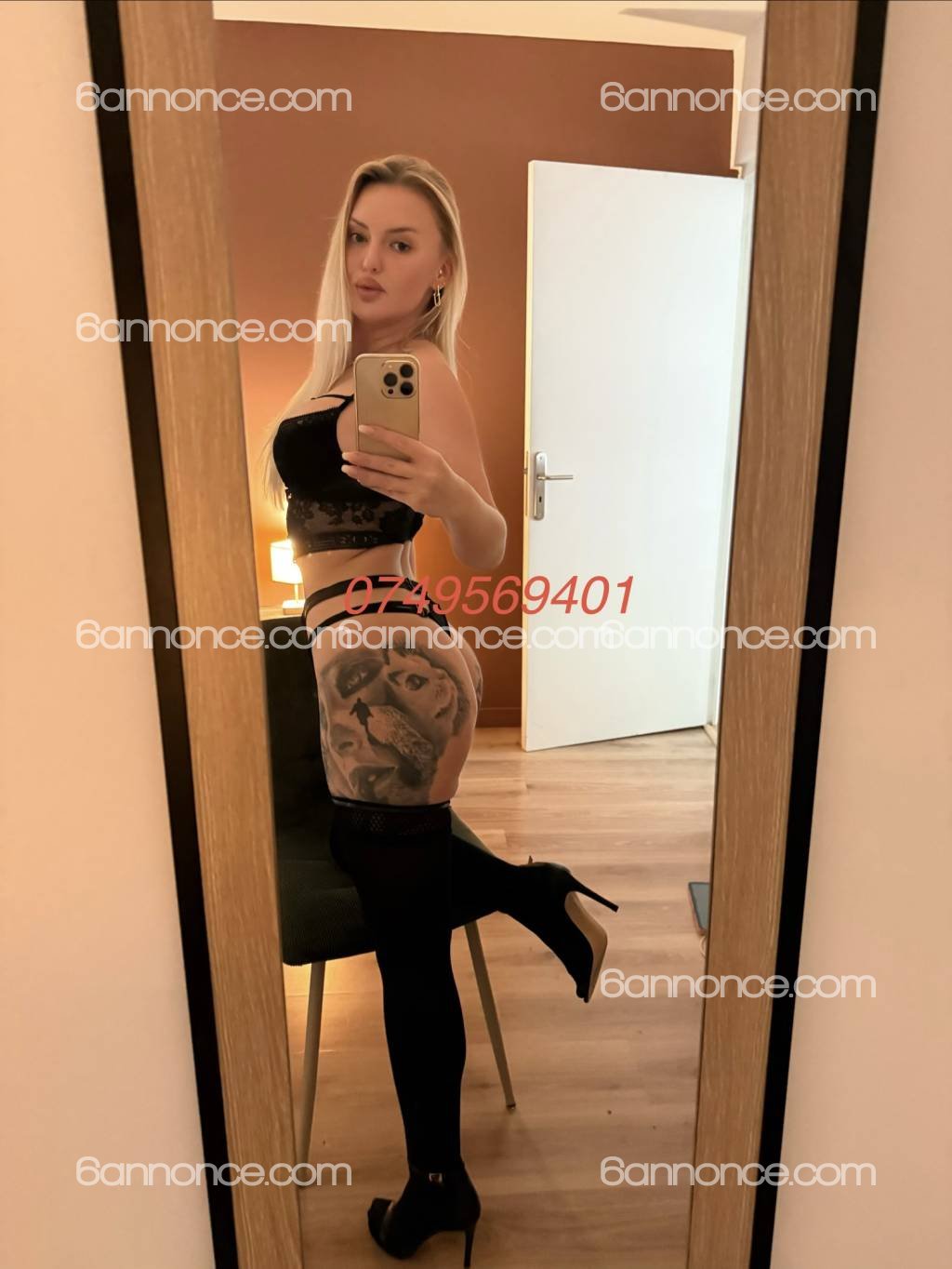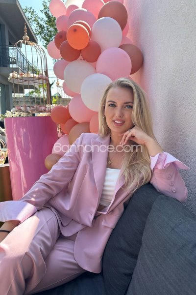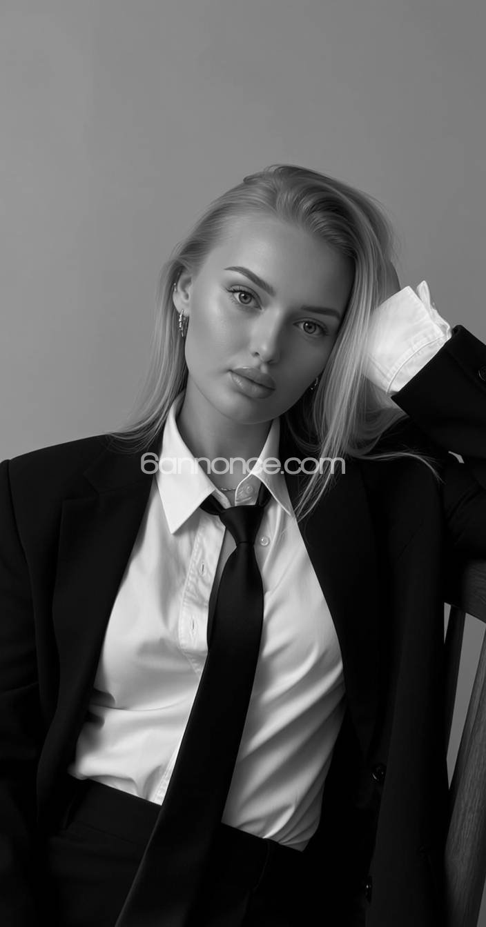 Souriante et enjouée, Élégante, le regard blue envoûtant , adepte de la belle lingerie, une longue chevelure blonde , soyeuse tombant sur mes reins.