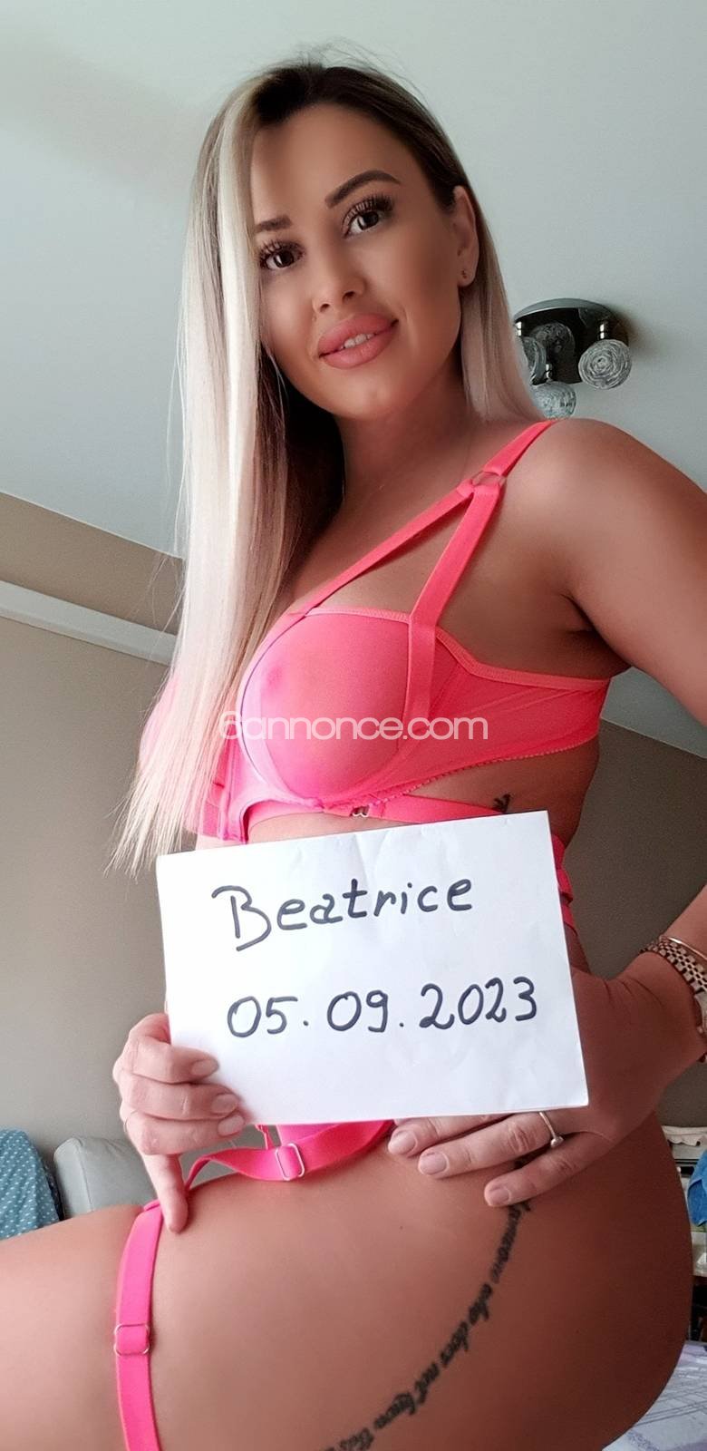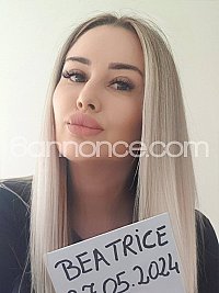 Oui, une adresse fiable et un profil qui ne se laisse pas inaperçu. J’ai eu le plaisir de rencontrer Béatrice dans une belle location de standing dont la chambre était meublée de tout le nécessaire y compris les grands miroirs. Béatrice m’a reçu souriante et de bonne humeur dans la tenue demandée après une prise de rendez-vous professionnellement gérée. Je n’ai pris que le minimum d’un menu diversifié mais ça était déjà beaucoup plus que ce que l’on trouve ailleurs. Béatrice a eu de l’initiative et su aussi se laisser mener ne laissant pas de temps mort et s’impliquant à fond dans toute opération. Mon bonheur assuré, je garderai le bon souvenir de cette visite et de la belle et lourde paire de seins qui m’avait attiré en premier et dont je pouvais pas décoller les mains pendant toute la rencontre.