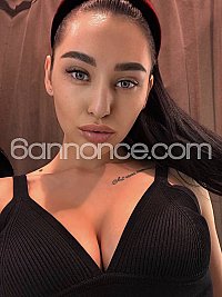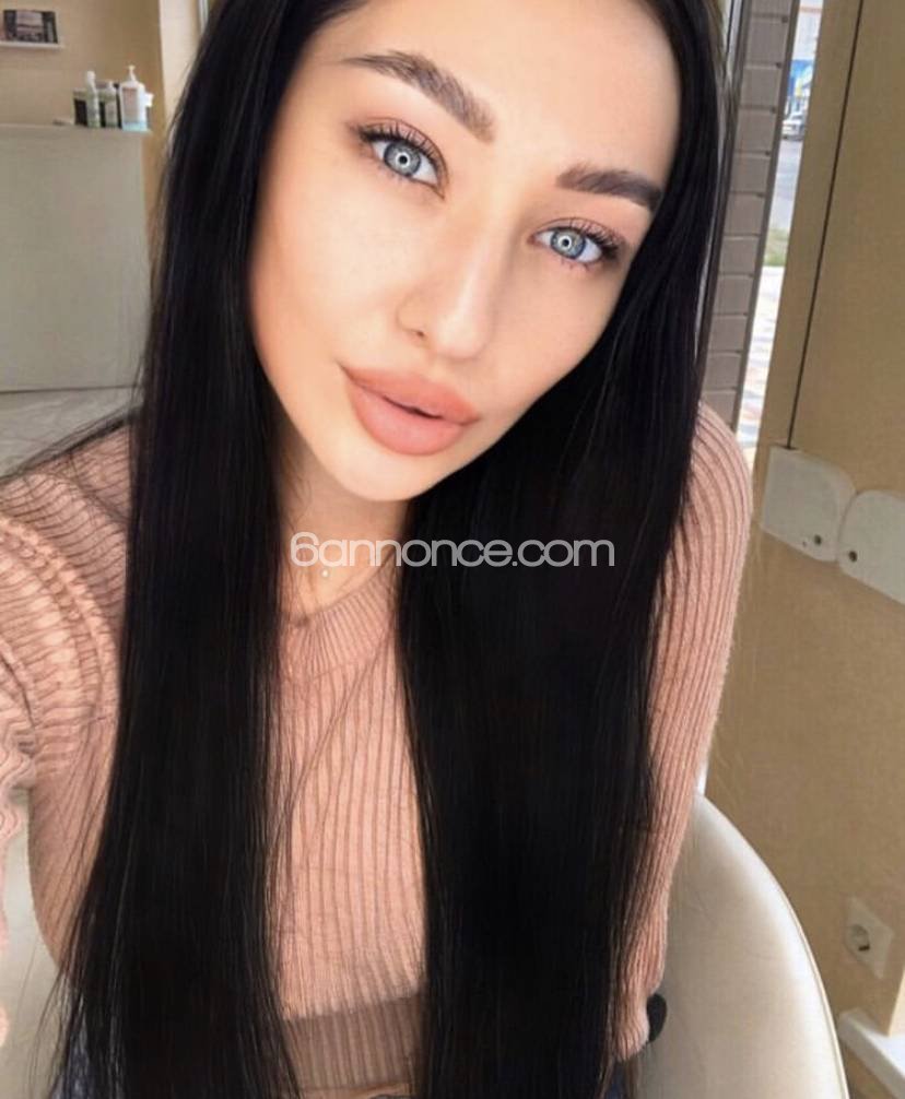 Beau visage aux yeux bleus perçants, longs cheveux noirs jusqu'à joli cul rond, corps modèle avec ventre plat. Baiser profond et passionné, excellente utilisation de ses lèvres sur la banane, et beaucoup de complicité dans l'exécution du massage.