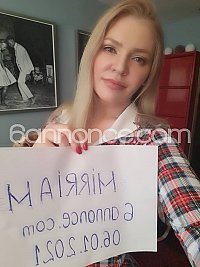 Mirriam était de retour dans notre ville après plusieurs mois où elle avait fait profiter d'autres lieux de ses charmes... Je n'ai pas hésité et y suis revenu les yeux fermés :) Elle est toujours aussi gentille et sa coquinerie me surprend toujours tant elle la prodigue avec naturel et enthousiasme. Ne pas hésiter à bien s'occuper d'elle tant elle semble apprécier. Elle n'est pas avare de french kisses, de son temps et de se plier en 4 (lol) pour nous faire plaisir. Et puis on discute facilement et intelligemment avec elles de sujets intéressants. Elle a aussi une mémoire surprenante et est capable de vous rappeler la tenue dans laquelle elle vous a reçu l'an dernier ou bien des promesses que vous luis aviez faites et bien entendu que je n'avais pas tenues :( tout ça toujours avec son sourire qui ne s'éteint jamais. Bref une femme qui connaît les hommes sur le bout... des doigts. Gros bisous à toi bb et à très bientôt !