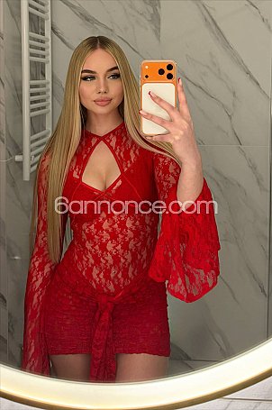 Bonjour ! Je suis une blonde élancée, avec un sourire enchanteur et une peau douce et lisse. Je suis prête à te faire vivre des moments inoubliables quand on se rencontrera. Féminine et élégante, j’ai une garde-robe bien fournie, alors si tu as des préférences vestimentaires, je me ferai un plaisir de