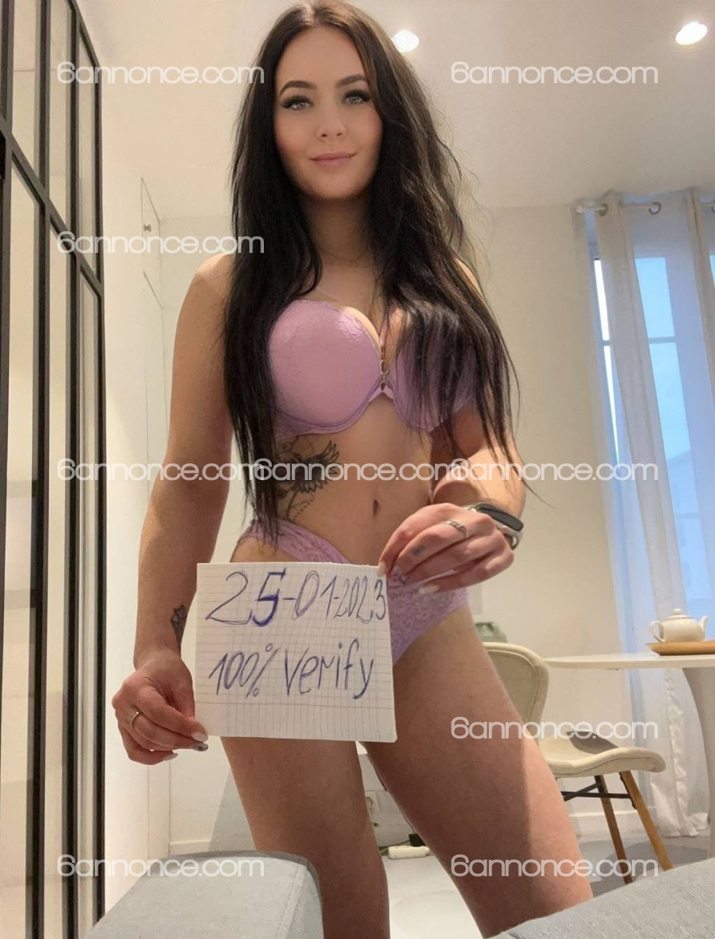 Je l'ai reconnu juste avant d'arriver à l'adresse ( tatouage !) et j'ai hésité à y aller. Mais je me suis dit allez c'est peu etre un bon coup ! Brune, pas maquillé, jolie visage quand même et c'est bien elle sur les photos ! Tres réservé, faut etre gentil pour qu'elle s'ouvre un peu. Massage tres conventionnel rien de plus ( GFE ). Ne prends pas d'initiative. Elle ne sera pas dans mes favories.