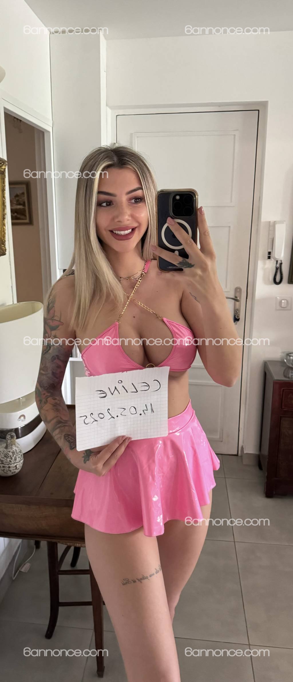 hello, Celine, c'est ton 1er rdv de mardi, merci pour ton acceuil. je souhaite te laisser une belle appréciation car j'ai bien apprédier ta compagnie.Celine est une jeune femme tres soignée avec de beaux tatouages, elle a des seins magnifique qui ont fait mon bonheur. j'ai apprécier chaques minutes passées à ses cotés. Merci de bien la respecter et vous pourrez vous faire palisir.