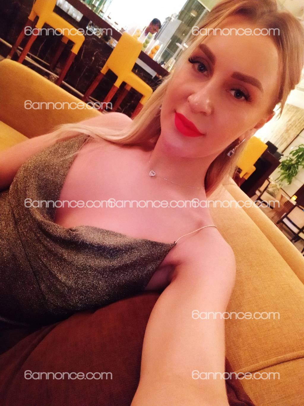 une belle blonde aux yeux bleus de l'Est comme on en raffole. Un canon de folie , on dirait un mannequin . Conforme à ses photos , bien entendu mieux en vrai . 1M75 sur talons en belle lingerie classe avec un corps sportif magnifiquement musclé. Il s'agit d'une danseuse professionnelle , je sais d'expérience que les filles qui pratiquent la danse sont les mieux foutues. Elle est Russe et comme souvent elle a une conception très hot de l'acte ( les ukrainiennes ne sont pas tristes non plus ...) , ça c'est typiquement Russe … les filles qui viennent du froid sont chaudes comme la braise. A voir absolument .